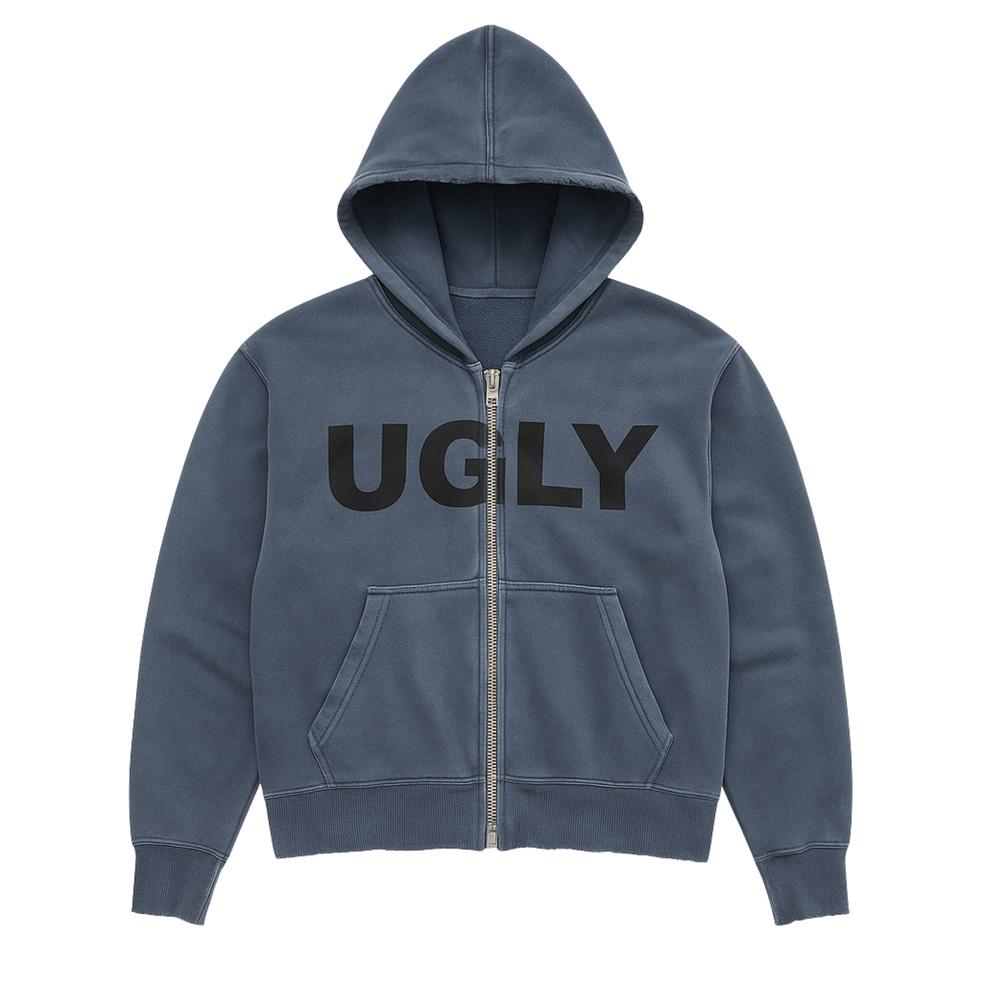 Oversized UGLY wordmark in white (rebellion, exposure)